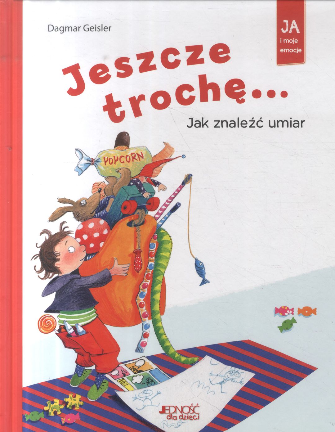 Książka ta w przystępny sposób pokazuje dzieciom, jak znaleźć umiar we wszystkim, co się robi, a zwłaszcza w tym, co sprawia nam szczególną przyjemność! Umiejętność powiedzenia sobie „Mam dość!” nie jest łatwa, ale dzięki mądrym poradom przedstawionym w tej książce każde dziecko będzie mogło ćwiczyć się w tej arcytrudnej sztuce zachowywania umiaru! Żywe i bliskie rzeczywistości kolorowe ilustracje zachęcają dzieci do rozmowy na ważne tematy...(https://aros.pl/ksiazka/jeszcze-troche-jak-znalezc-umiar)