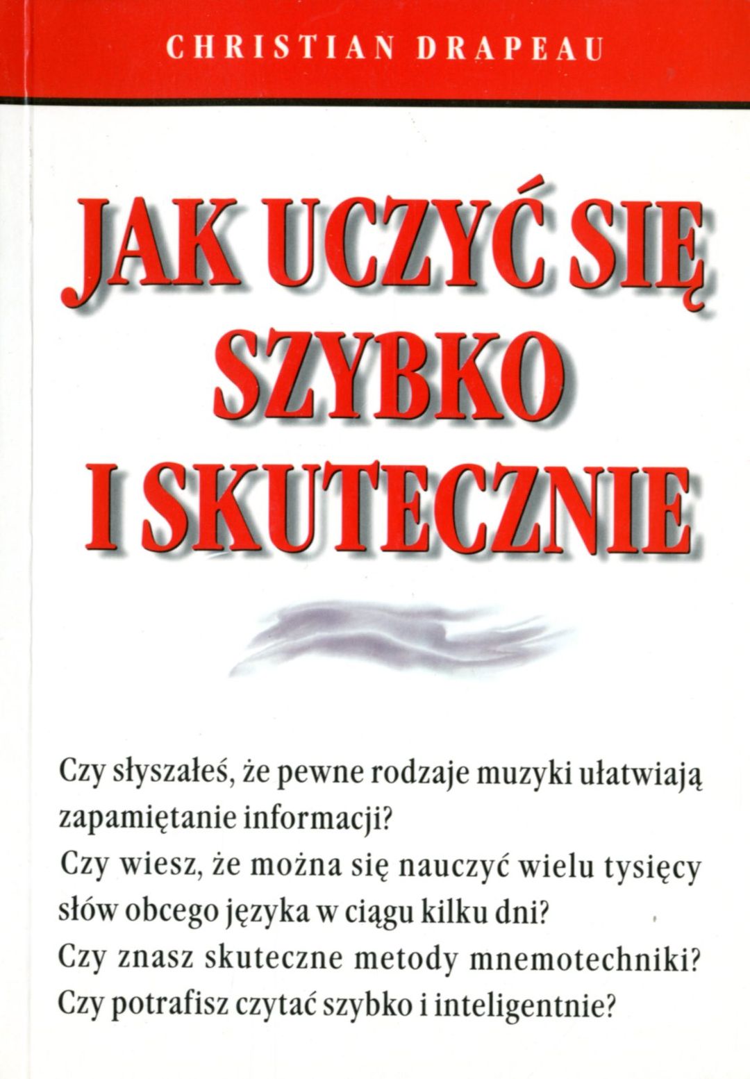 Na okładce podtytuł: Czy słyszałeś, że pewne rodzaje muzyki ułatwiają zapamiętanie informacji? Czy wiesz, że można się nauczyć wielu tysięcy słów obcego języka w ciągu kilku dni? Czy znasz skuteczne metody mnemotechniki? Czy potrafisz czytać szybko i inteligentnie?