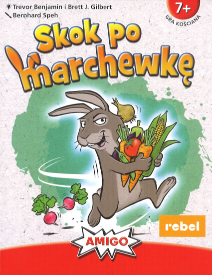 Skok po marchewkę : [Gra planszowa] / Trevor Benjamin, Brett J. Gilbert ; ilustracje Bernhard Speh. - Gdańsk : Rebel, 2024. - 1 gra (64 karty, 12 kości, 5 płotów) : kolor, tektura ; w pudełku 10x12x3 cm + instrukcja