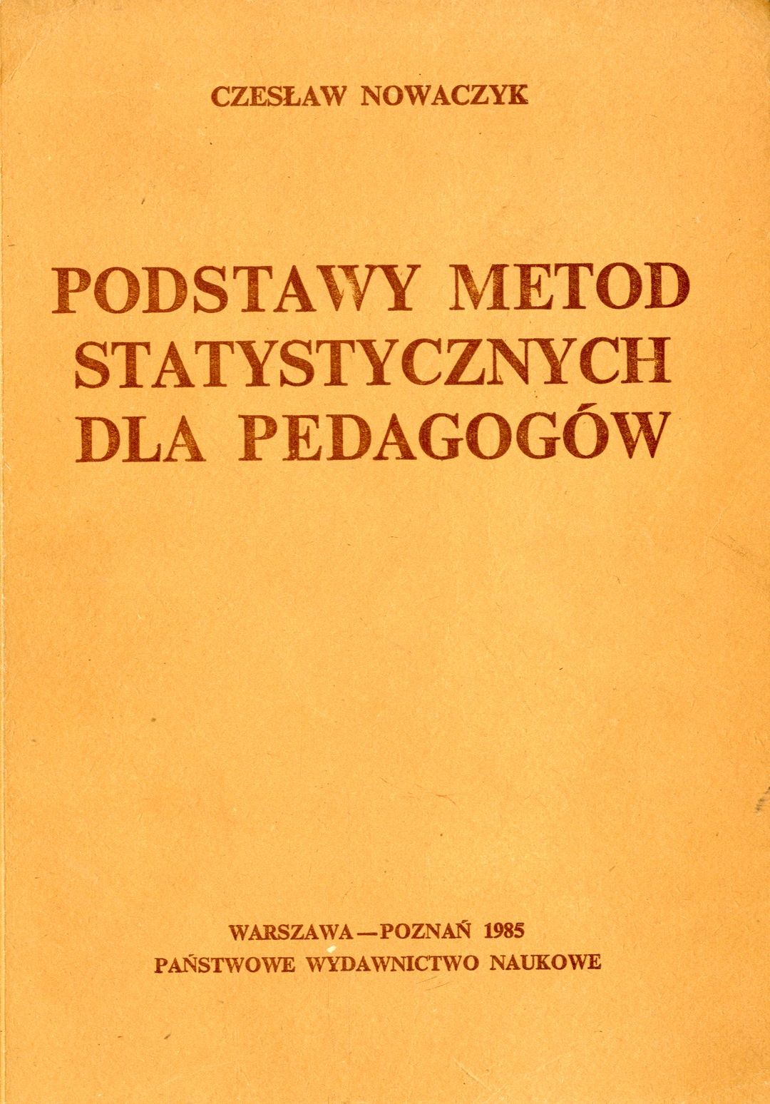 Nowaczyk Czesław – Podstawy metod statystycznych dla pedagogów. Wyd. 1. Warszawa, Poznań 1985, Państwowe Wydawnictwo Naukowe. 24 cm, s. 283, wykresy, tabele. Odcięty górny narożnik karty tytułowej z prywatną pieczęcią bez szkody dla tekstu.