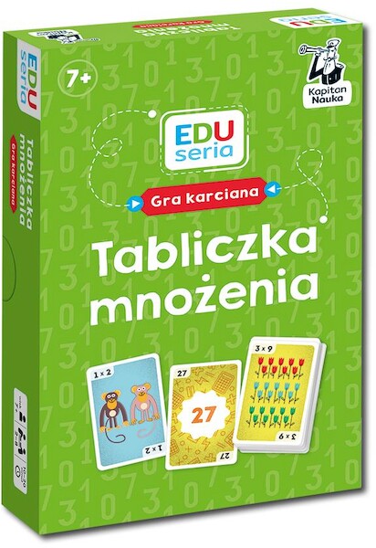 Tabliczka mnożenia : gra karciana / opracowanie: Patrycja Zakaszewska ; projekt i ilustracje: Maciej Łazowski. - Warszawa : Edgard, © 2025. - 1 gra (55 kart) : plastik, kolor ; w pudełku 4x12x18 cm + instrukcja ([4] strony : ilustracje ; 14 cm).