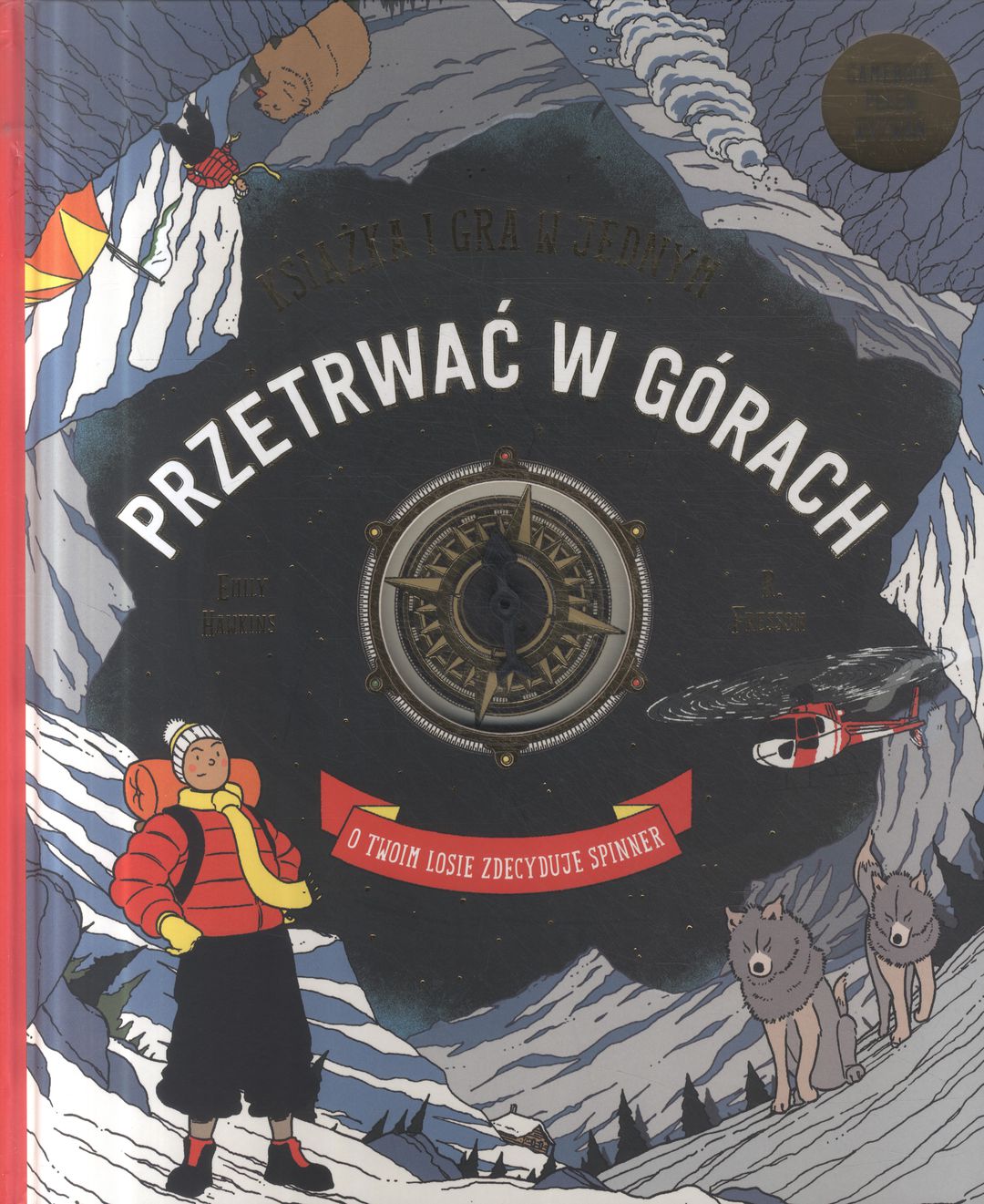 "Lecisz helikopterem nad Alpami po wielką przygodę. Niestety maszyna ląduje awaryjnie, a ty musisz sobie poradzić w górach. Czy uda Ci się przetrwać śnieżną zamieć? Czy nikniesz lawiny? Jak zakończy się spotkanie z niedźwiedziem i wilkami? Od twojej odwagi, determinacji i wiedzy zależy, czy odnajdziesz drogę do obozu i wrócisz cało do domu. Zakręć spinnerem i postępuj zgodnie ze wskazówkami, żeby przejść do kolejnego etapu gry. Ekscytującej historii towarzyszą wskazówki ekspertów, ciekawostki naukowe oraz prawdziwe relacje podróżników, którzy przeżyli w dziczy wbrew przeciwnościom losu." [od wydawcy]