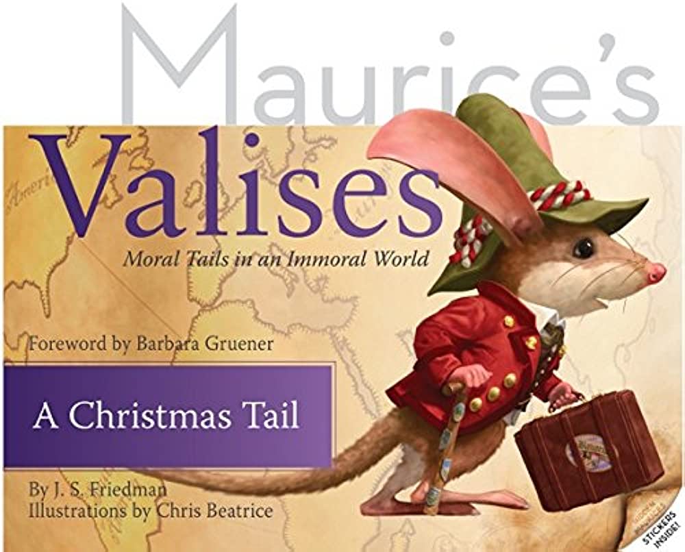 Maurice's Valises : Moral Tails in an Immoral World. Book 6, A Christmas Tail / by J. S. Friedman ; illustrations by Chris Beatrice ; foreword by Barbara Gruener. - Amsterdam : Mouse Prints Press, copyright 2014. - 39, [5] stron : ilustracje ; 21 x 25 cm + dodatek (koperta : [14] stron, 1 karta tablic luzem : ilustracje ; 21 cm).