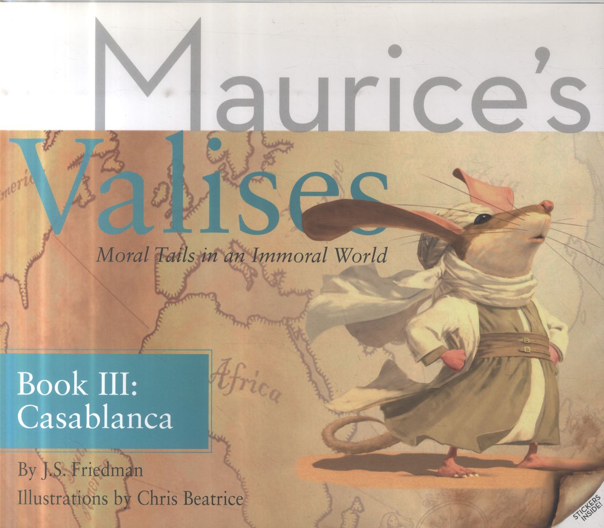 Maurice's Valises : Moral Tails in an Immoral World. Book 3, Casablanca / by J. S. Friedman ; illustrations by Chris Beatrice. - Amsterdam : Mouse Prints Press, copyright 2013. - 45, [5] stron : ilustracje ; 21 x 25 cm + dodatek (koperta : [14] stron, 1 karta tablic luzem : ilustracje ; 21 cm).