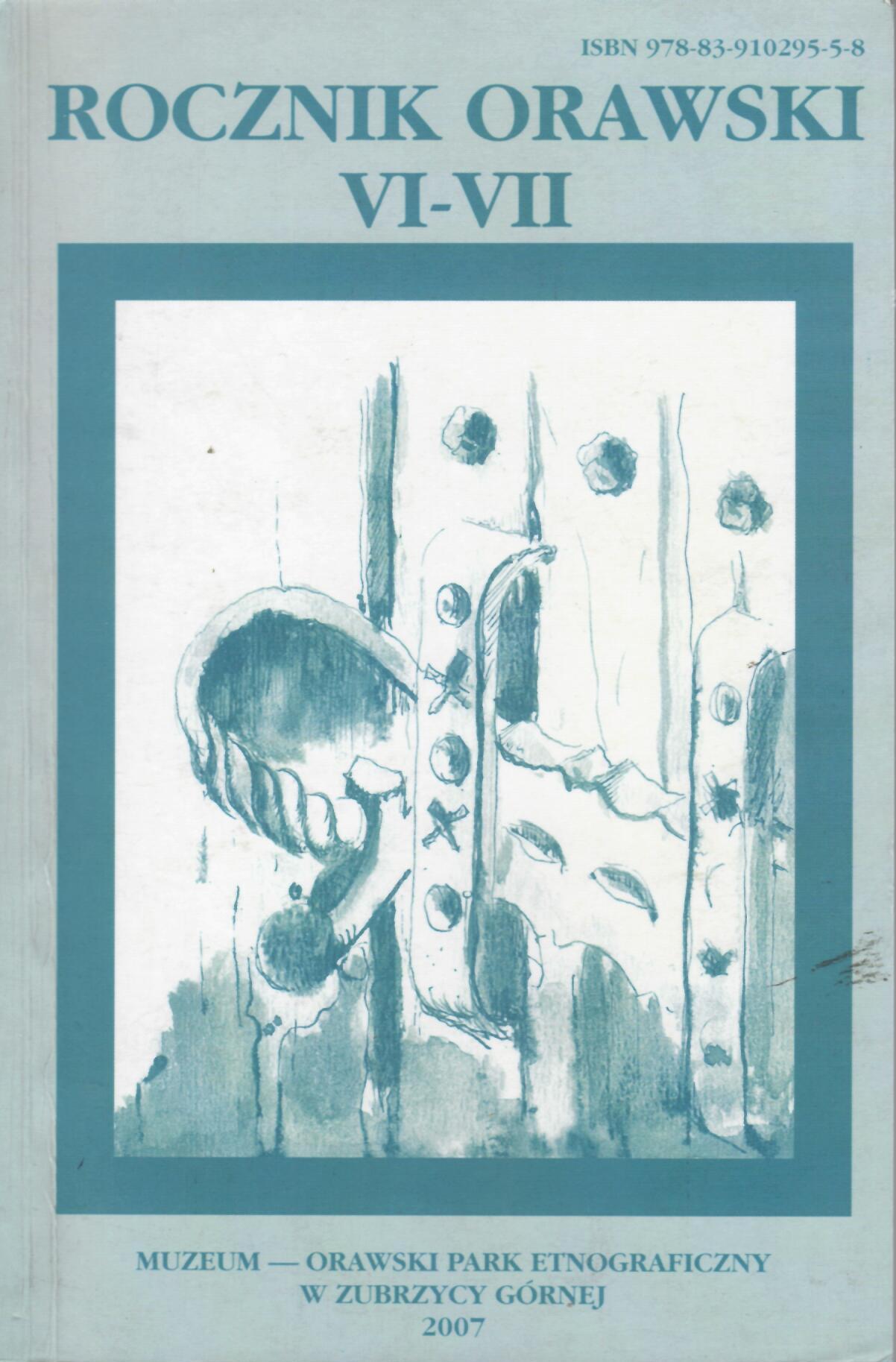Rocznik Orawski VI - VII : za rok 2004 - 2006 / redakcja Jerzy M. Roszkowski. - Muzeum - Orawski Park Etnograficzny. - Zubrzyca Górna : Muzeum - Orawski Park Etnograficzny, 2007. - 233 stron : ilustracje, portrety, tablice ; 24 cm.