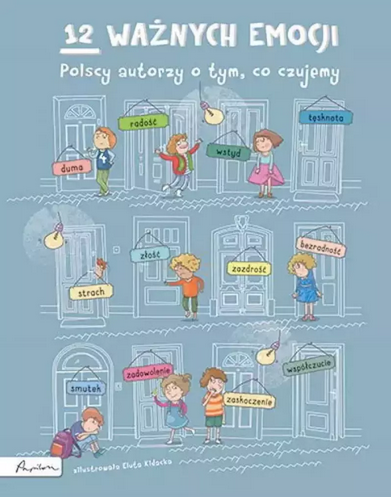 Dwunastu autorów napisało dwanaście opowiadań pełnych emocji. Towarzyszyło im zadowolenie, gdy bohaterowie stawali się dokładnie tacy, jak chcieli. Złość, gdy zbyt długo nie mogli wpaść na dobry pomysł, i wiele innych… uczuć. Dzieci skaczą z radości, pękają z dumy, onieśmiela je wstyd czy strach. Każda z doświadczanych przez nie emocji jest ważna! Wszystkie warto poznać i zrozumieć. Czytajmy dzieciom tę książkę, zachęcając do rozmowy o emocjach, które codziennie przeżywają. Niech wyrosną na dorosłych, którzy potrafią sobie z nimi radzić. W tej książce znajdziecie teksty o: dumie, wstydzie, zazdrości, radości, strachu, bezradności, zadowoleniu, smutku, zaskoczeniu, tęsknocie, współczuciu i złości